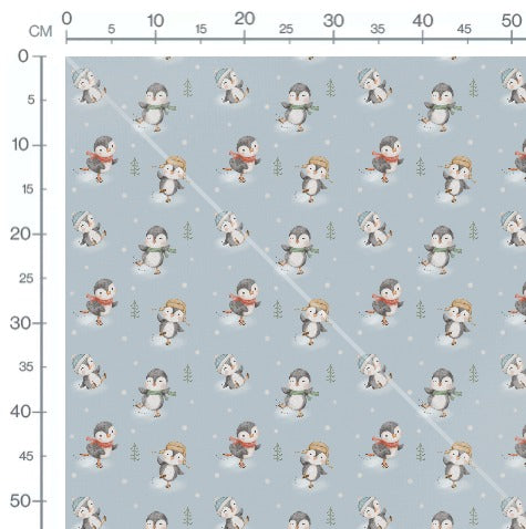 Stoffmuster Schneefreunde Pingu